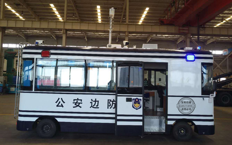 1.8米車載升降照明燈在電動移動警務(wù)室/執(zhí)勤方艙/執(zhí)勤車安裝效果實拍,升起高度1.8米,工作電壓DC12V,燈具可上下左右360°旋轉(zhuǎn)。