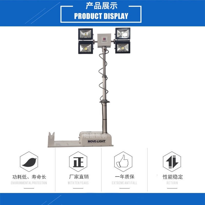 燦皓照明為滿足消防、電力、公An等各種大型施工作業(yè)、事故搶修、搶險(xiǎn)救災(zāi)等工作現(xiàn)場(chǎng)對(duì)大面積高亮度照明的需要,特研制開發(fā)生產(chǎn)出該系列折疊式車載升降照明燈。