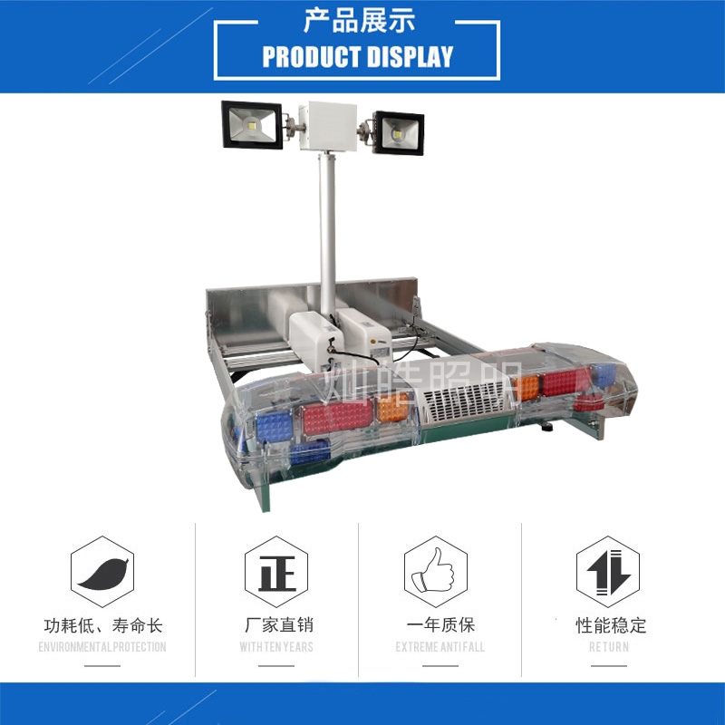 車載移動(dòng)照明設(shè)備升起時(shí)高度分別有1.2米、1.8米、2.8米、3.5米供客戶選擇。比較適用各種皮卡車、面包車、吉普車、卡車、越野車、轎車、專用車及部分小型汽車配備使用。